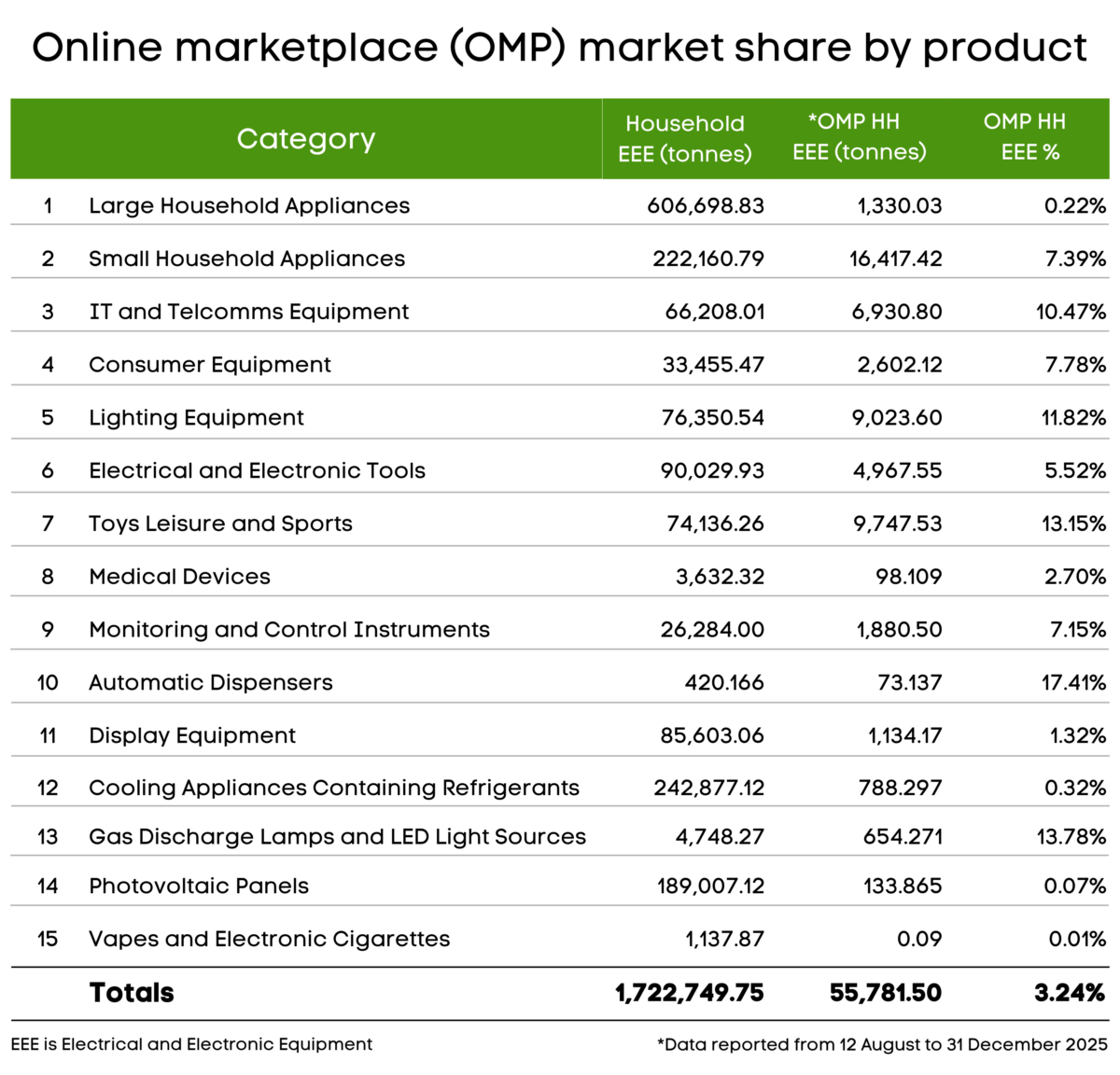 The WEEE regulations were amended last year, and from 12th August 2025 online marketplaces were required to start collecting data for all electrical goods brought into the UK via their platforms.
